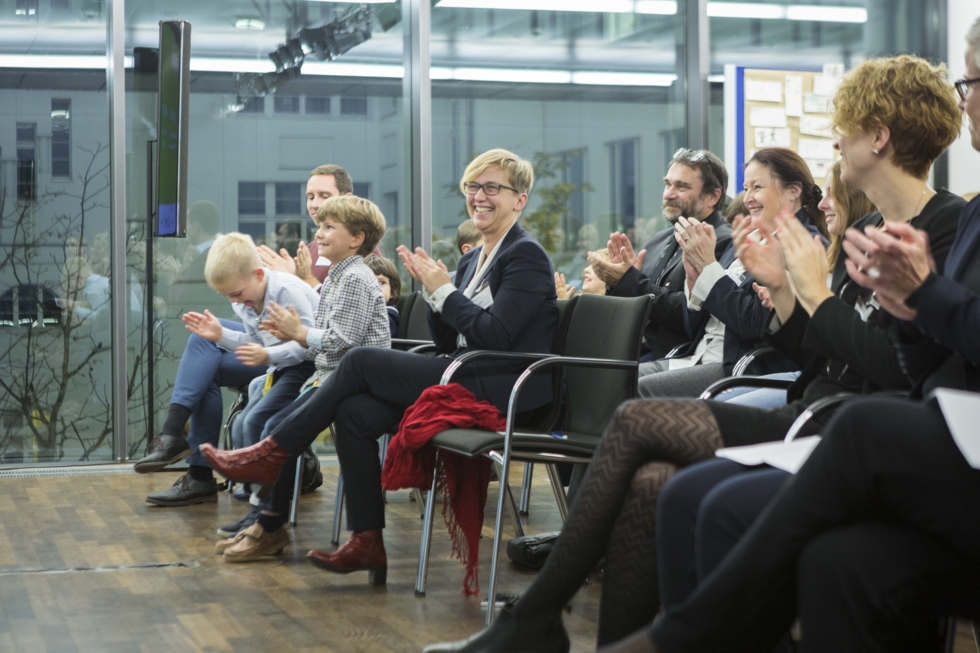 Applaus aus dem Publikum und von Sabine Mellies, Geschäftsführerin vom Kompetenzzentrum Technik-Diversity-Chancengleichheit e.V.